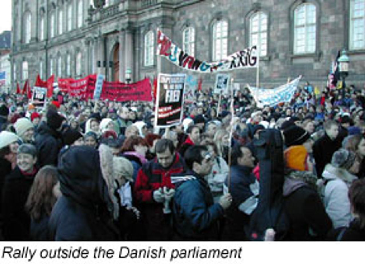 The demonstration in the Danish capital of Copenhagen was attended in sub-zero temperatures by some 30,000 people, dwarfing last autumn’s antiwar demonstration, which involved 2,500 protesters.