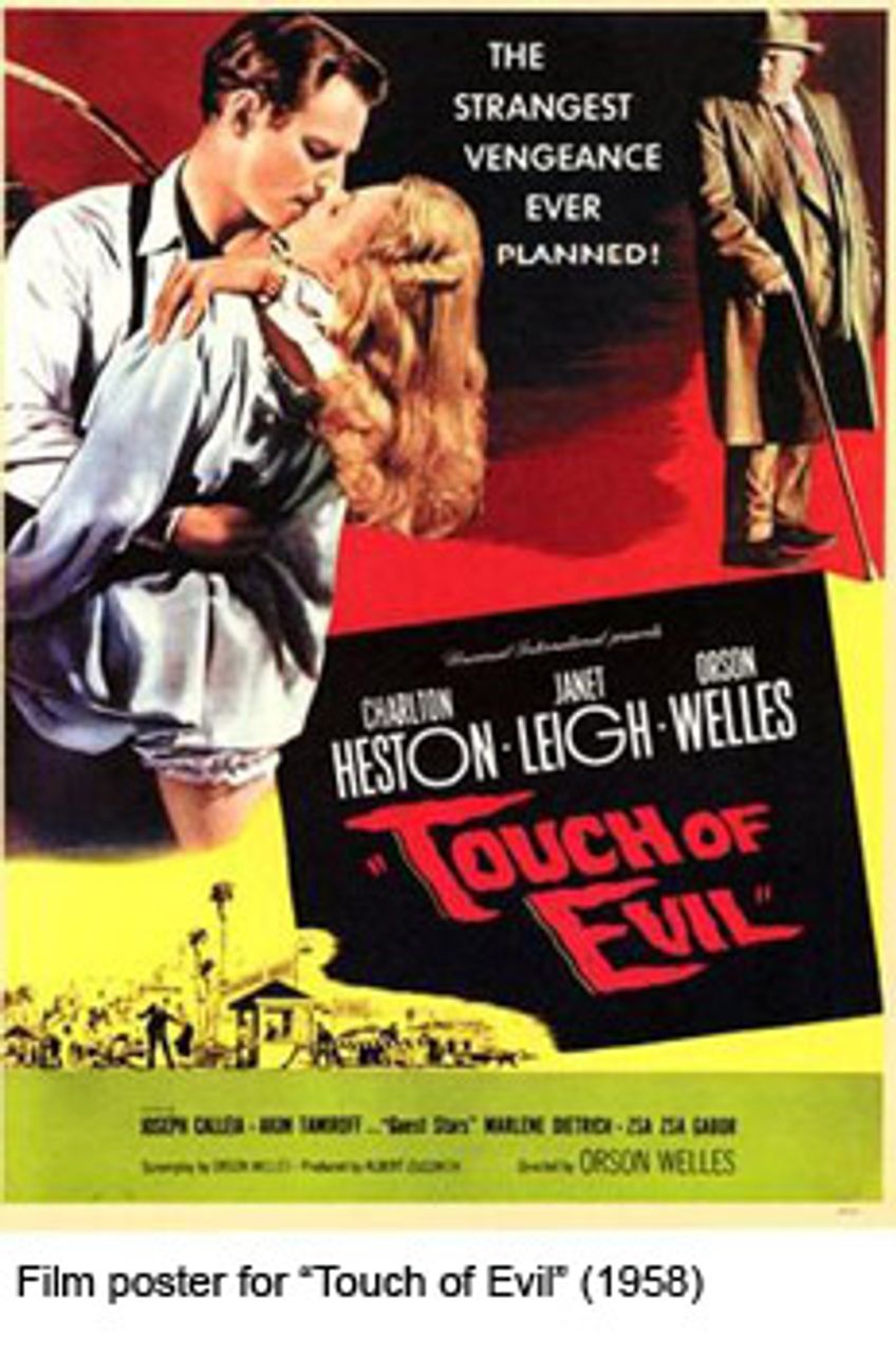 In Touch of Evil, Heston plays a Mexican narcotics cop embroiled in an investigation in a seedy US border town. For once, he appears in a film that shows something of the corruption, violence and outright criminality of postwar American society, and treats all of it, including the villains in the piece, with ambiguity and complexity. And Heston performs well. His relatively relaxed performance in Ben-Hur, or at least the more restrained parts of it, may have resulted from the salutary influence of Welles as a director and performer.