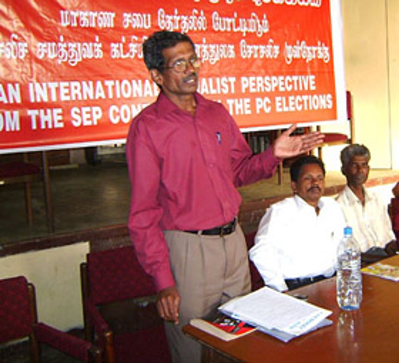 Another SEP candidate, plantation worker S. Savarimuttu, said he had joined the SEP more than a decade earlier, having discovered its political principles and program through bitter experience. He referred to the successful campaign of the Revolutionary Communist League, the forerunner of the SEP, to release several plantation youth, including himself, after they were detained by the police on bogus accusations of being LTTE suspects in 1995.