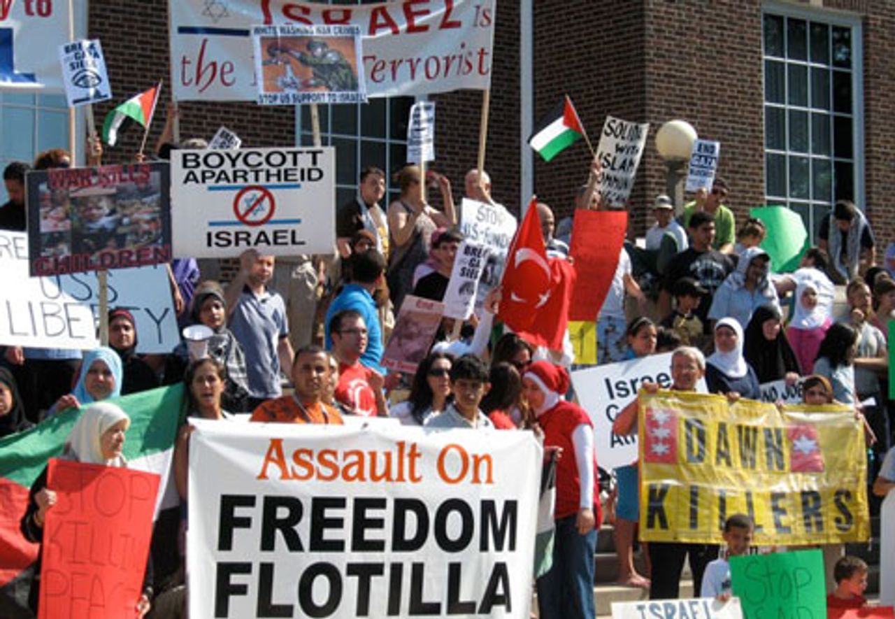 In New York City, hundreds of protesters assembled in Times Square Monday, before marching to the Israeli consulate. They carried signs saying “Free Gaza,” and “Israeli soldiers shot unarmed civilians.” Three thousand people were reported in attendance in Los Angeles demonstrating outside the Israeli embassy.