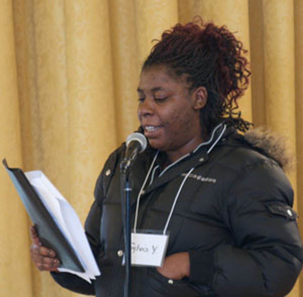 Sylvia Young speaking to the conferenceMy name is Sylvia Young and I am from Detroit. People are losing their jobs. People are losing their homes. Workers are taking pay cuts because they don’t want to lose their jobs. Now they want to take away our little benefits—what do they expect us to do?