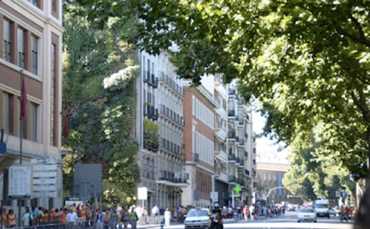 The setting in Madrid is dramatic. As we approached the museum from the south, along Paseo del Prado, a lush, green, garden loomed overhead, covering the side of a building along the edge of the small entrance plaza. The vertical vegetation of Patrick Blanc breaks the urban wall, while reflecting the Royal Botanic Gardens across the boulevard.