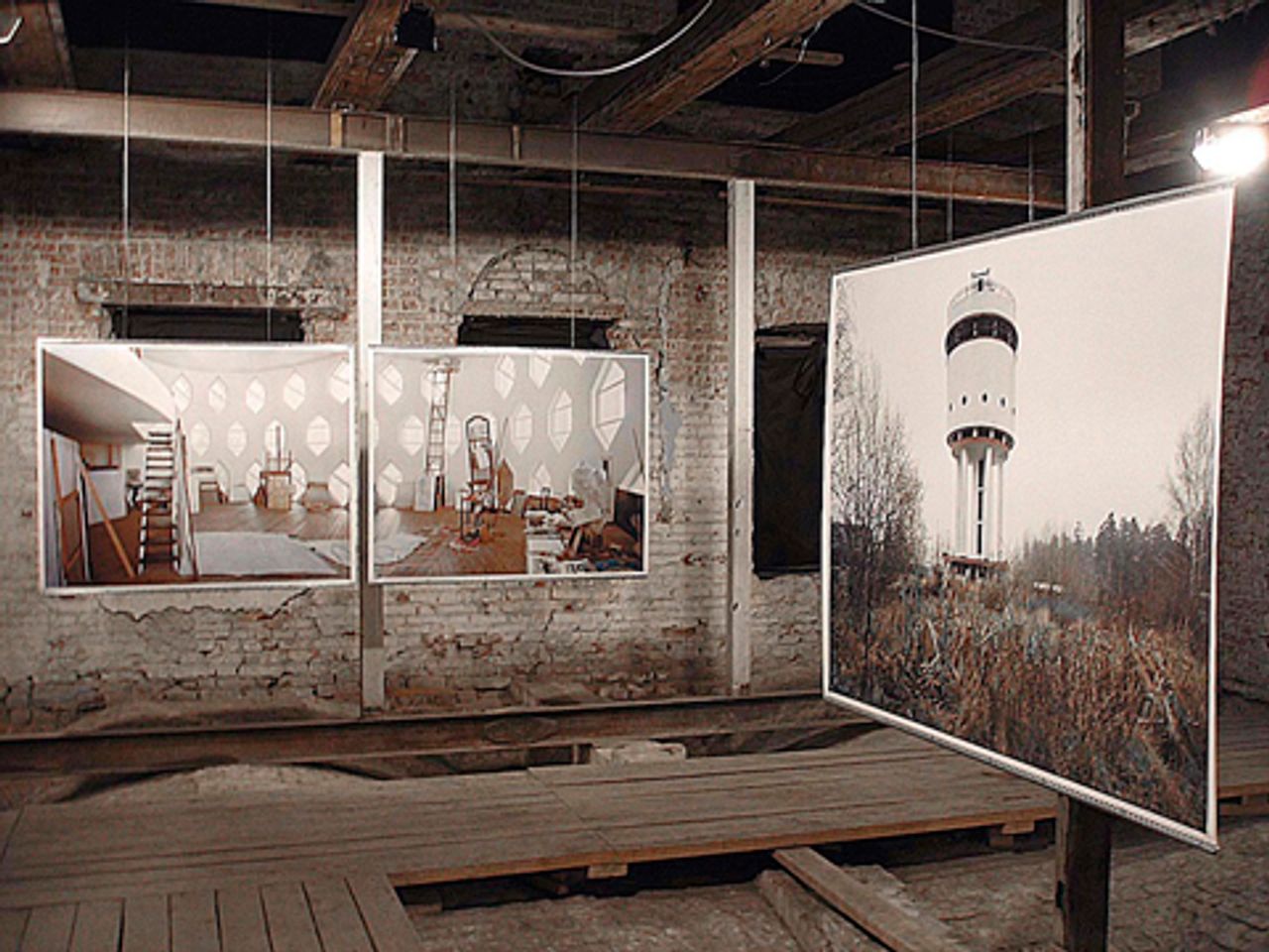 Richard Pare's prints in the Ruina, Shchusev State Museum of Architecture, Moscow, 2006When the SMCA had funds for an exhibition in 2008, Ms. Tsantsanoglou invited Mr. Sarkisyan to include archival photographs from MUAR. She also added artworks of the Costakis Collection which have a special relationship to the buildings on view.