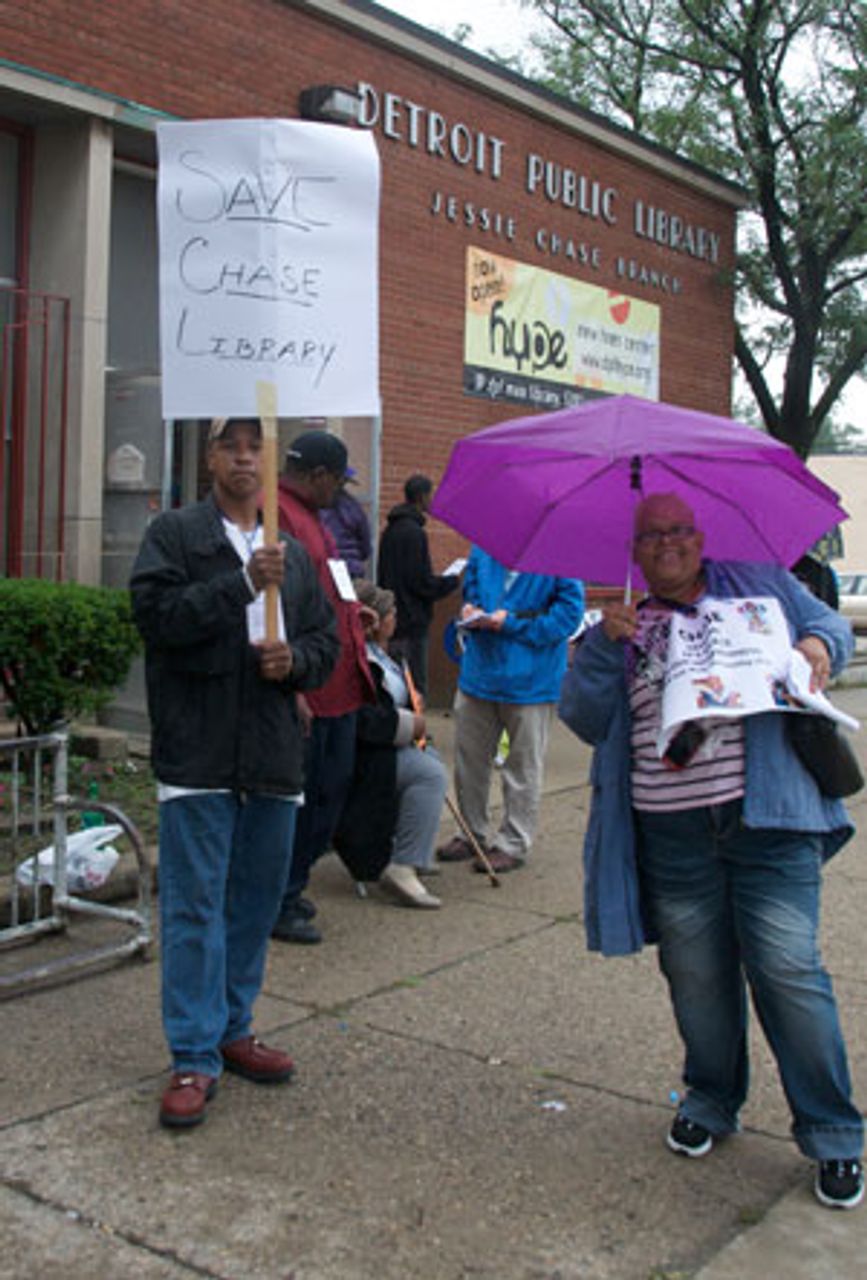 CAUS supporters speak to demonstrators in front of the libraryScores of Detroit residents picketed outside the Jessie Chase branch of the Detroit Public Library in northwest Detroit at an all-day protest against the plan announced by the city to close Chase, along with five other libraries. “We are not going to stand for this place being closed,” G. Peggy Noble told the WSWS. “We are not going to stand for a building like this being boarded up. This library is small, but it is vital. They should put more money in to expand it.”