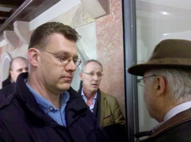 ජාත්‍යන්තරව ප්‍රකට ඉතිහාසඥයෙකු හා සර්විස්ගේ චරිතාපදානයෙහි ජර්මානු සංස්කරනය පලකිරීමට විරෝධය පලකරමින් සූර්කාම්ප් ප්‍රකාශන මන්දිරය වෙත යැවූ ලිපියට අත්සන් තැබූ එක් අයෙකු වන පෝට්ස්ඩෑම් විශ්වවිද්‍යාලයේ මහාචාර්ය මාරියෝ කෙස්ලර් ද රැස්වීම් ශාලාවට පිවිසීමෙන් වලක්වන ලදී.
