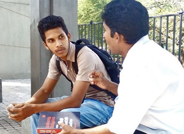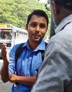 ප‍්‍රදීප් සසප උද්ඝෝෂකයකු සමග කතා කරමින්