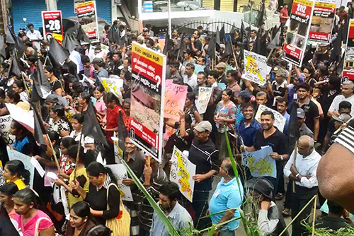 උමාඔය ව්‍යසනයට විරෝධය පාන විරෝධතාකරුවෝ