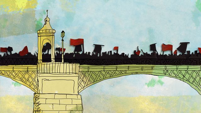 රුසියාවේ ශාන්ත පීටර්ස්බර්ගයේ නේවා නදිය හරහා ගමන්කරන උද්ඝෝෂකයින්