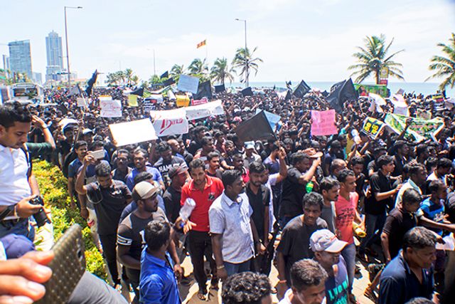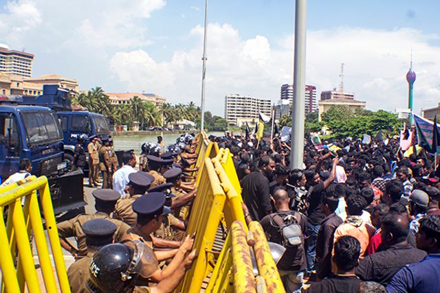 විරෝධතාකරුවන් අසල පිහිටි ජනාධිපති ලේකම් කාර්යාලය දෙසට යාමට පටන්ගත් විට මාර්ග බාධක යොදා පොලීසිය ඔවුන් නැවැත්වූ හ. උද්ඝෝෂකයන්ට එරෙහි ව භාවිතා කිරීම පිනිස කඳුලු ගෑස්, බැටන් පොලු හා ජල ප්‍රහාරක ට්‍රක්රථවලින් සන්නද්ධ වූ කැරලි මර්දන පොලීසිය මාර්ග බාධකවලට පිටුපසින් සිටිය හ.