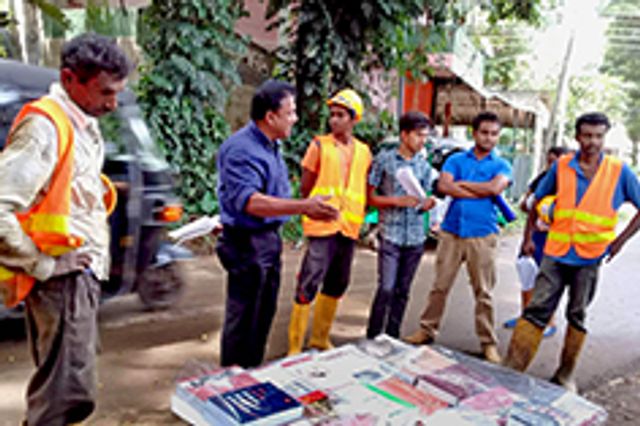 ටෙලිකොම් කම්කරුවන් සමග කතා කරන විජේසිරිවර්ධන