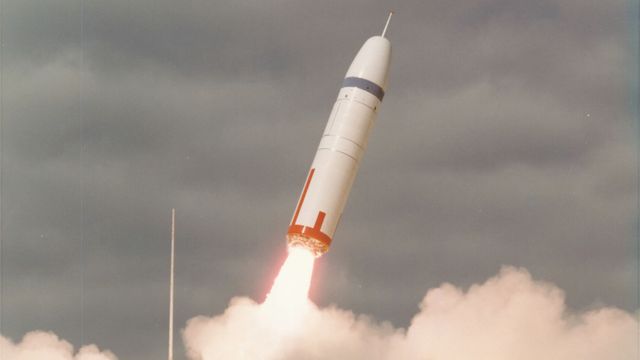 1978 ජනවාරි 18 ෆ්ලොරිඩාහි කේප් කැනවරල්හි සිට කෙරුන ට්‍රයිඩන්ට් මිසයිලයේ ප්‍රථම දියත් කිරීම [එක්සත් ජනපද නාවික හමුදා ඡායාරූප ගොනුවෙන් ]