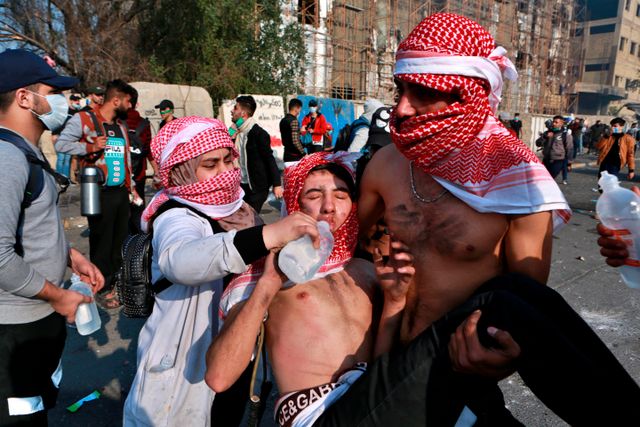 සඳුදා බැග්ඩෑඞ් සහ අනෙකුත් නගර සිසාරා ගිය විරෝධතාවන්හිදී ආරක්ෂක හමුදා මගින් සෙනග අතරට සජීවී වෙඩි ප්රහාර වට එල්ල කිරීමෙන් අවම වශයෙන් පෙලපාලිකරුවන් පස් දෙනෙකු මිය ගිය බව වාර්තා වේ. දෙදෙනෙකු වෙඩි පහර වලින් ද තුන් වැන්නාගේ හිසමතදී කෙලින්ම එල්ල කල කඳුළු ගෑස් කැනිස්ටරයක් පුපුරායෑමෙන් ද බැග්ඩෑඞ් විරෝධතාවලදී පුද්ගලයින් තිදෙනෙකු මිය ගියහ. හතරවන පෙලපාලිකරුවා, බැග්ඩෑඩයට නිරිත දෙසින් පිහිටි මධ්යම ඉරාක නගරයක් වන කර්බාලාහිදී පොලීසිය විසින් වෙඩි තබා ඝාතනය කරන ලද අතර පස්වන පුද්ගලයා ඊසානදිග බකුබාහි දී ඝාතනය කරන ලදී.